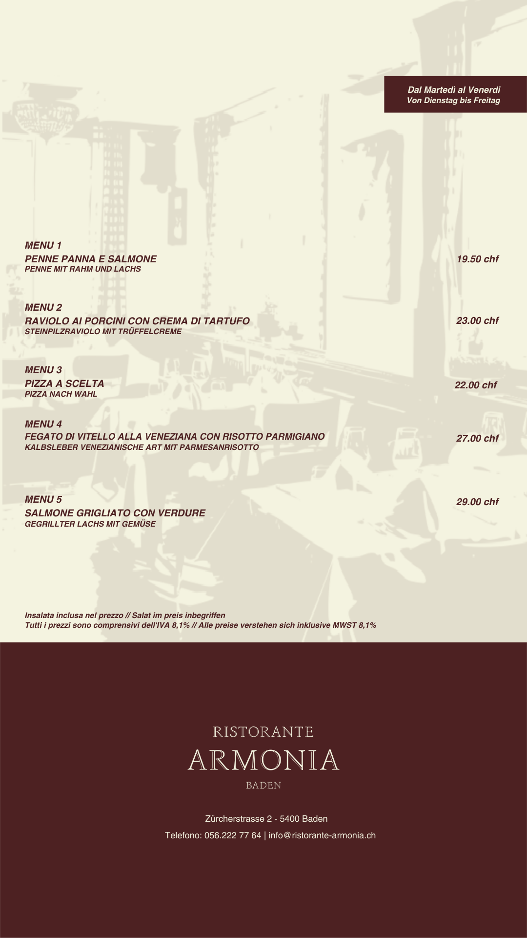 Unser Menü ist von Dienstag bis Freitag verfügbar